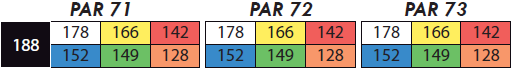 Tee shot in discesa verso un green notevolmente sopraelevato, difeso da tre bunker e dalla pendenza con bosco sulla sinistra.